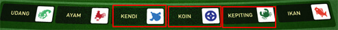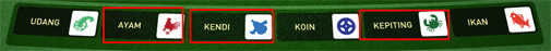 Misalnya dadu yang keluar adalah Kendi, Ayam Dan Kepiting |