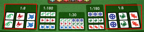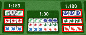 1. Memilih 1 gambar kembar tiga untuk hasil gambar sama pada ketiga dadu (bukan salah satu dadu) Pembayaran 180X Pasangan