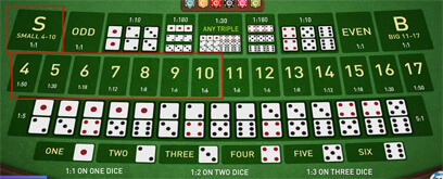 Small (kecil) Jumlah dari ketiga buah dadu adalah 4 sampai 10. Pembayaran 1 X Pasangan. Triple dadu tidak termasuk kecil. ![]() |