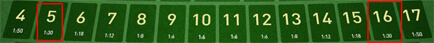 Jumlah hasil dari 3 Dadu adalah 5 atau 16 pembayaran 30 X pasangan ![]() |