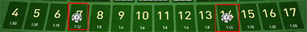 Memilih 1 nomor kembar tiga untuk keluar pada ketiga dadu (bukan salah satu dadu) pembayaran 180X pasangan ![]() |
