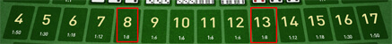 Jumlah hasil dari 3 Dadu adalah 8 atau 13 pembayaran 8 X pasangan ![]() |